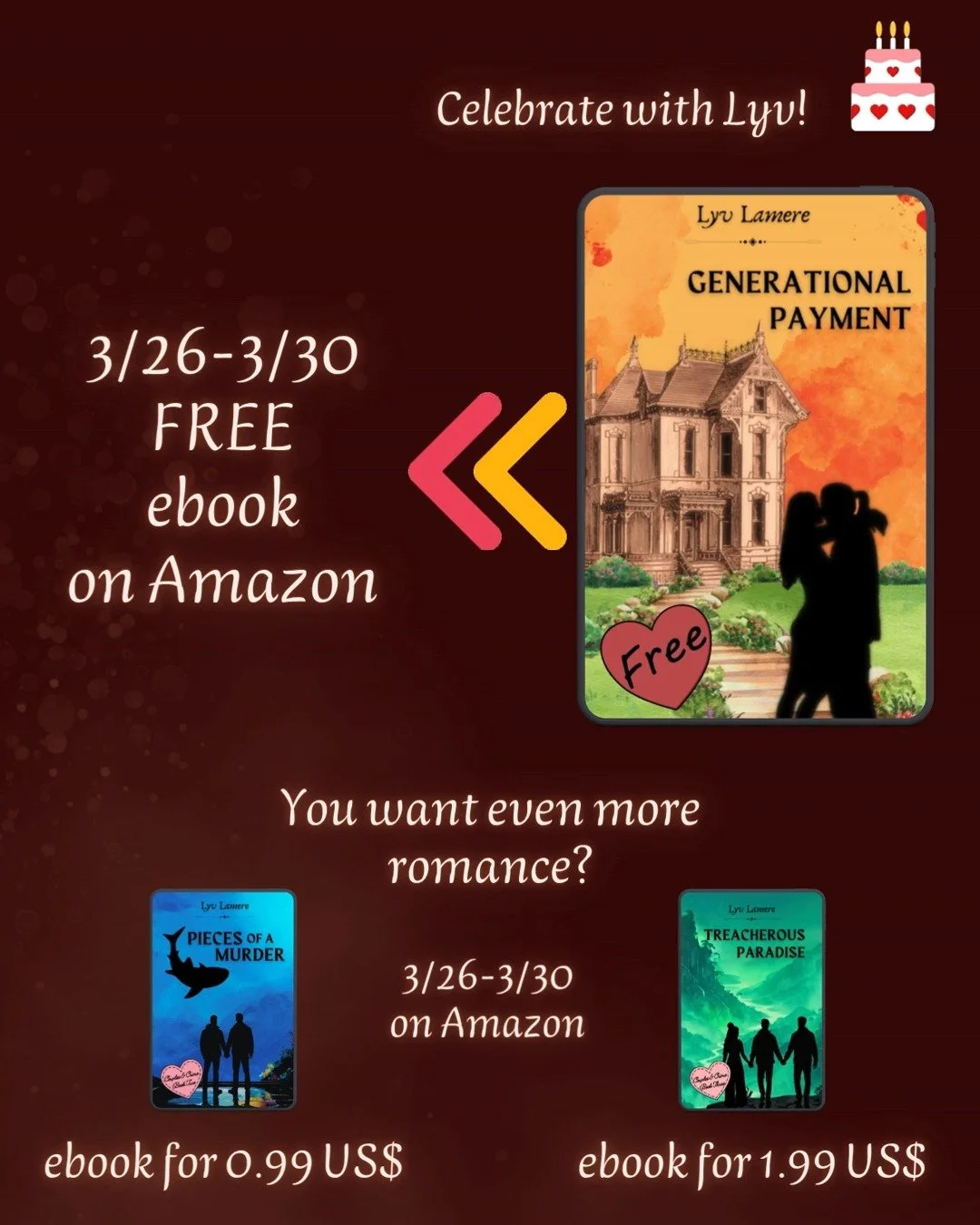 Lyv goes by another name by day but has chosen to publish her books under the pseudonym Lyv Lamere to separate her writing from her other jobs.